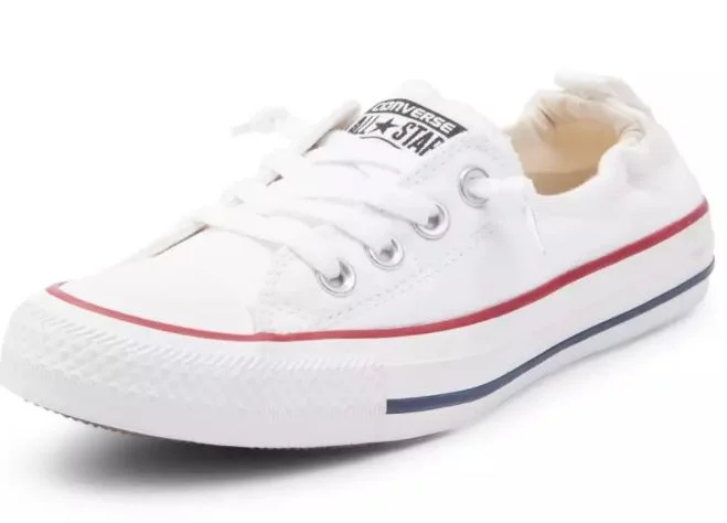Most of you are aware that I'm a shoe buyer by profession, which means I buy fashion sneakers for a living. My work office is a sea of fashion sneakers and the fun part of my job is getting to review tons of styles from brands such as Nike, Adidas, Vans, and Converse. Unless you're an official sneaker head, I get that the average stylish girl doesn't need 12 pairs of sneakers. So I have narrowed it down to the three pair that you should have in your life right now. The first is the updated Chuck Taylor shoe. It's a less bulky version of the classic style, called the Shoreline, which doesn't require any lacing action on your part. Score. The second is a classic Adidas 3 stripe shoe with rose gold stripes instead of black stripes. It's selling fast, so you may want to get on it while its still available. The last is a specific Academy Sports/Adidas collab on the QT Racer style that is made with black and rose gold. This is an Academy Sports and Outdoors exclusive shoe that I created with Adidas to give a basic black sneaker a bit of an edgier look. This is a shoe you will NOT see anywhere else in the marketplace and it is selling quickly. So if you want it, you better buy it soon. Both of the Adidas styles have their coveted cloudfoam technology, so they are both extremely comfortable, which is almost a necessity nowadays. Being uncomfortable is completely out of style.